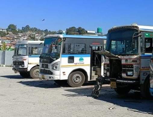 पिथौरागढ़ में रोडवेज वर्कशॉप में खराबी आने से खड़ीं बसें। संवाद