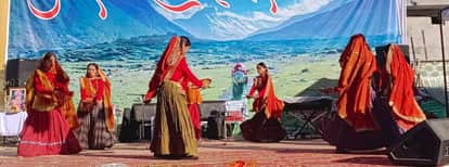 मुनस्यारी महोत्सव में रंगारंग सांस्कृतिक कार्यक्रम प्रस्तुत करतीं महिलाएं। संवाद