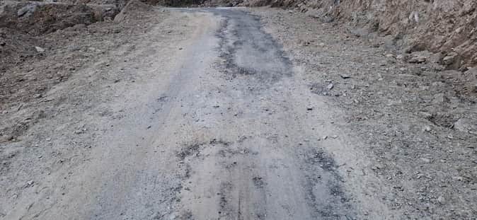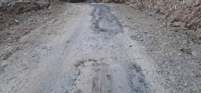 मदकोट-तोमिक सड़क पर उखड़ा डामर। स्रोत : ग्रामीण