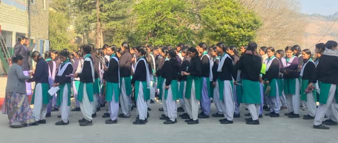 पिथौरागढ़ जीजीआईसी में परीक्षार्थियों की जांच करतीं शिक्षिकाएं। स्रोत:विद्यालय