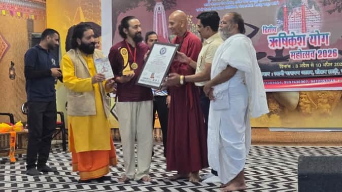Rishikesh News: विक्रम ने 10 मिनट में 100 आसन कर रचा वर्ल्ड रिकॉर्ड
