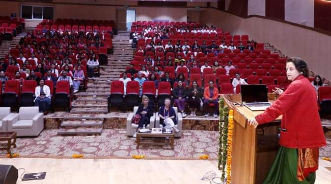 12 एम्स में आयोजित कार्यक्रम को संबोधित करती एम्स निदेशक प्रो.मीनू सिंह ।स्रोत-एम्स