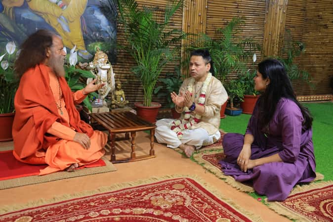 स्वामी चिदानंद सरस्वती से मुलाकात करते सूफी गायक कैलाश खैर। स्रोत परमार्थ मीडिया।