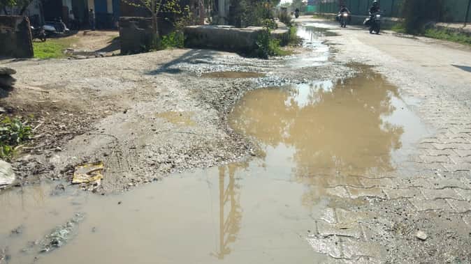 Rishikesh News: सिंचाई गूल के रिसाव से तालाब बनी सड़क
