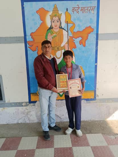 शिक्षक के साथ मौजूद छात्र दिव्यांशू: जागरूक पाठक