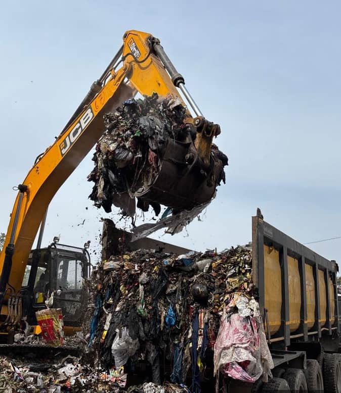 नगर पंचायत स्वर्गाश्रम जौंक के ट्रंचिंग ग्राउंड से उठाया जा रहा कूड़ा। स्रोत जागरूक पाठक।