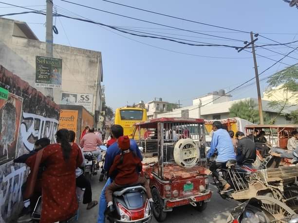 नेहरू स्टेडियम के पास लगा जाम। संवाद