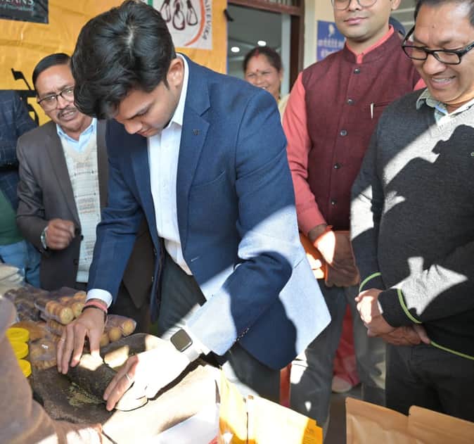माल्टा महोत्सव में पहाड़ी नमक पीसते जिलाधिकारी प्रतीक जैन - संवाद