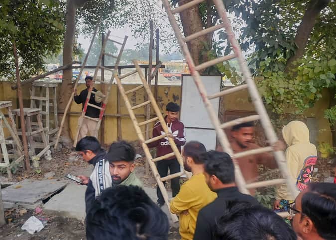 रुद्रपुर इंदिरा काॅलोनी में अमिक्रमण हटाते दुकानदार। अमर उजाला