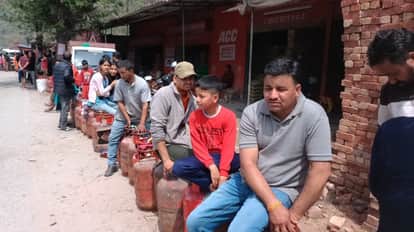 उत्तरकाशी के गंगोरी में रसोई गैस के लिए लाइन में लगे उपभोक्ता। संवाद