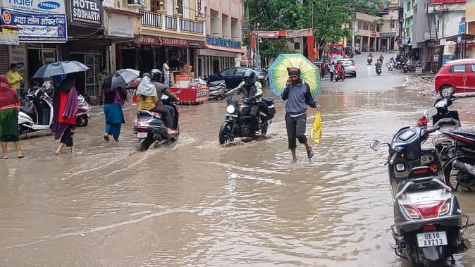 मुख्य पेट्रोल पंप और ज्ञानसू में जलभराव होने से लोगों को आवाजाही में हुई दिक्कत