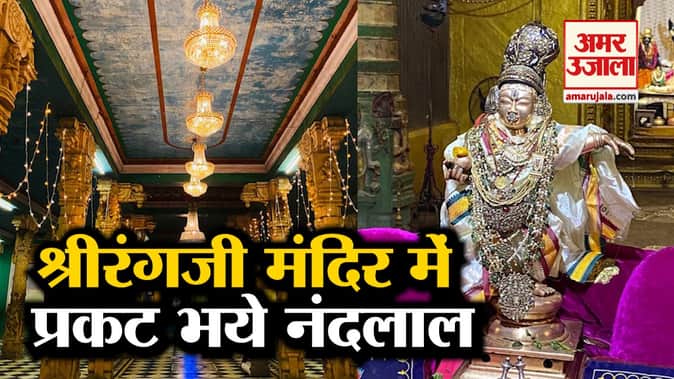 वृंदावनः श्रीरंगजी मंदिर में प्रकट भये नंदलाल, जन्माष्टमी पर ठाकुरजी का किया अभिषेक