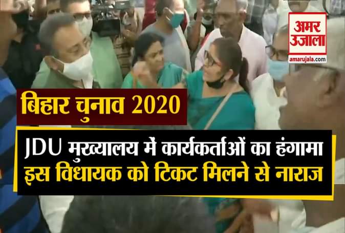 बिहार चुनाव 2020: जेडीयू मुख्यालय के बाहर पार्टी कार्यकर्ताओं का हंगामा