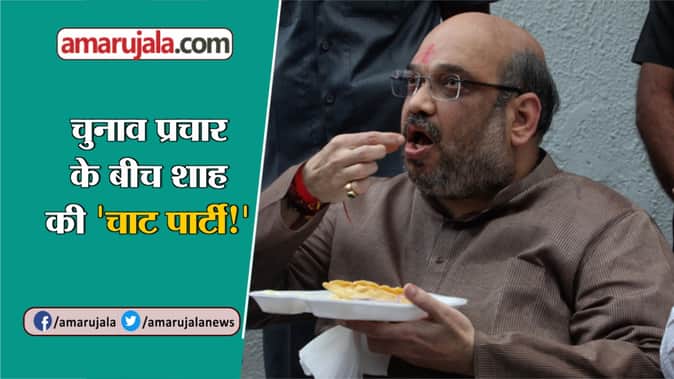 VIDEO: इस जगह पर अमित शाह ने उठाया इंदौरी व्यंजनों का लुत्फ