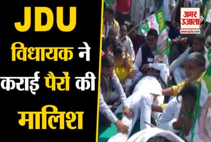 जेडीयू विधायक कौशल यादव की दबंगई, कार्यकर्ताओं से करवाई पैरों की मालिश