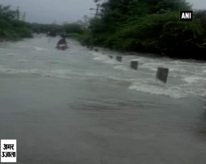 देखिए कैसे बाढ़ में बह गया बाइक सवार