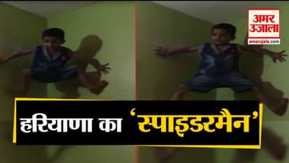 Three year old kid from Haryana climbs up the wall like Spider Man