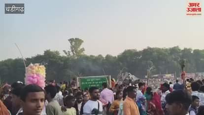 चंडीगढ़ के सेक्टर-42 की न्यू लेक पर सूर्य उपासना के महा पर्व पर छठ व्रतियों की भीड़ उमड़ी। सोमवार को अस्ताचलगामी सूर्य को अर्घ्य देने के लिए पहुंचे व्रती।