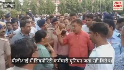 VIDEO : पीजीआई चंडीगढ़ में सिक्योरिटी कर्मचारी यूनियन का हंगामा