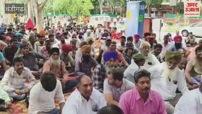 चंडीगढ़ निगम कार्यालय के बाहर नौकरी से निकाले ट्यूबवेल कर्मियों का प्रदर्शन