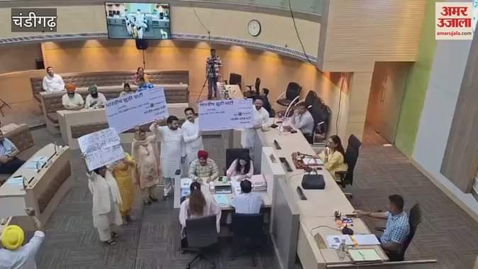 चंडीगढ़ नगर निगम सदन की बैठक में जोरदार हंगामा हो रहा है। कांग्रेस की तरफ से मेयर के सामने भारतीय झूठी पार्टी का बनाया हुआ चेक प्रस्तुत किया गया। दोनों ही पार्टी के नेता जमकर हंगामा करने लगे। हंगामा शुरू होते ही मेयर ने भारतीय सेना को बधाई देना शुरू कर दिया। सदन में बजट न मिलने, कर्मचारियों को नौकरी से निकल जाने, सामुदायिक केंद्रों के दरों को बढ़ाने का विरोध हो रहा है।