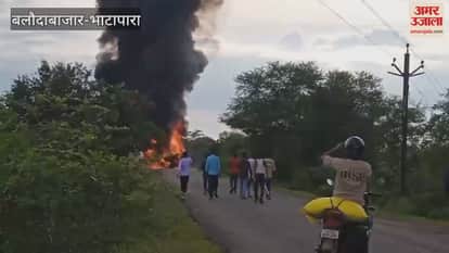 CG News: बलौदाबाजार में पेट्रोल टैंकर पलटने से भीषण आग, ड्राइवर-कंडक्टर ने कूदकर बचाई जान