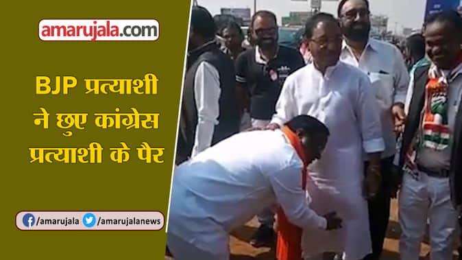 Chhattisgarh assembly election: bjp candidates touches feet of congress candidates in avihar