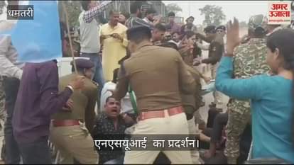 VIDEO : धमतरी में एनएसयूआई का प्रदर्शन, धमतरी और सिहावा विधायक समेत कई लोग रहे मौजूद