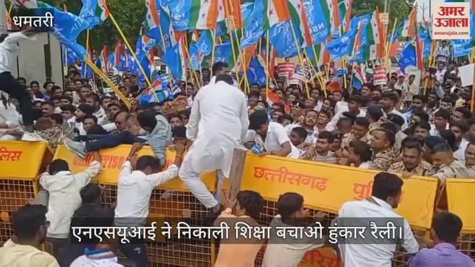 धमतरी में एनएसयूआई ने निकाली शिक्षा बचाओ हुंकार रैली, कलेक्ट्रेट का किया घेराव