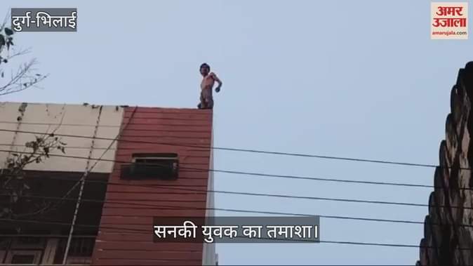 VIDEO : दुर्ग में सनकी युवक का हाई वोल्टेज ड्रामा, चार मंजिला इमारत में चढ़कर किया तमाशा