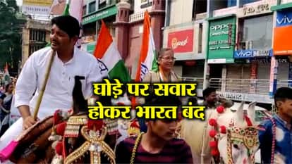 छत्तीसगढ़ के रायपुर में कांग्रेस के बुलाए गए भारत बंद के दौरान अनोखा प्रदर्शन देखने को मिला। भारत बंद को सफल बनाने के लिए कांग्रेस की पूर्व महापौर किरणमयी नायक घोड़े पर सवार होकर निकली, जिसे देखने को लिए लोगों की भीड़ लग गई।