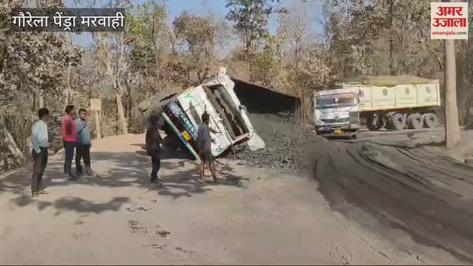 VIDEO : जीपीएम के आरएमकेके रोड पर कोयले से भरा ट्रेलर पलटा, चार किलोमीटर लंबा लगा जाम, लोग हुए परेशान