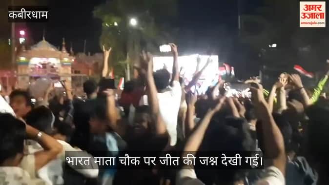 भारत ने तीसरी बार टी20 विश्व कप का खिताब जीत लिया है। रविवार को अहमदाबाद के नरेंद्र मोदी स्टेडियम में खेले गए खिताबी मुकाबले में भारत ने संजू सैमसन, अभिषेक शर्मा और ईशान किशन की अर्धशतकीय पारियों की मदद से 20 ओवर में पांच विकेट पर 255 रन बनाए। जवाब में न्यूजीलैंड की टीम 19 ओवर में सिर्फ 159 रन ही बना सकी और भारत ने 96 रन से मैच जीत लिया। इसी के साथ टीम इंडिया तीन टी20 विश्व कप खिताब जीतने वाली पहली टीम बन गई। इस जीत का जश्न कबीरधाम जिले में दिखा है। कवर्धा शहर के भारत माता चौक पर लाइव मैच देखने व्यवस्था की गई थी। जैसे ही भारतीय टीम ने जीत दर्ज कराई तो खेल प्रेमियों में उत्साह दिखाई दिया। लोगों ने एक दूसरे को जीत की बधाई दी। इसके अलावा जिले के बोड़ला, पंडरिया, पांडातराई समेत अन्य कस्बों में भी लाइव मैच को देखा गया। यहां पर भी भारतीय टीम की जीत के बाद लोगो ने पटाखें फोड़कर जश्न मनाया।