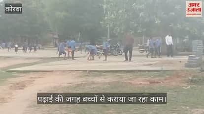 कोरबा के जामपानी माध्यमिक शाला में पढ़ाई की जगह बच्चों से कराया जा रहा काम, वीडियो वायरल