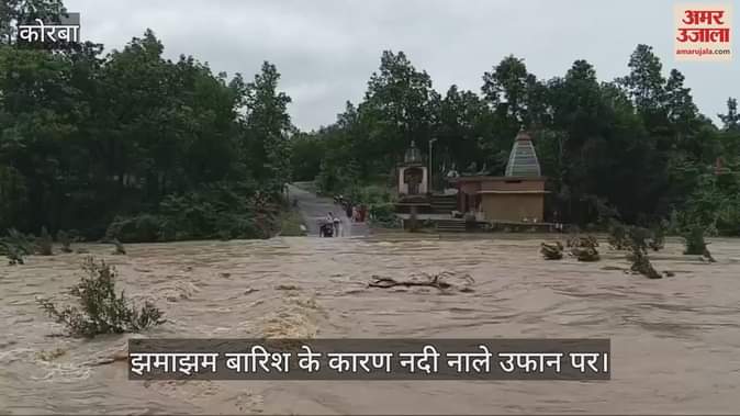 कोरबा में झमाझम बारिश के कारण नदी नाले उफान पर, घिनारा नाला का जलस्तर बढ़ा, कई गांव के सम्पर्क टूटे