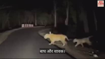 VIDEO : जंगल में चार बाघ दिखने से मचा हड़कंप, सड़क पार करते हुए कैमरे में कैद, दहशत में स्थानीय लोग