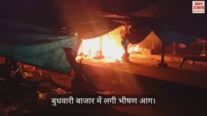 VIDEO : सिलेंडर में ब्लास्ट होने से बुधवारी बाजार में लगी भीषण आग, दमकल कर्मियों ने पाया आग पर काबू