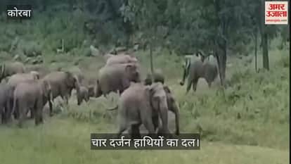 VIDEO : कोरबा में हाथियों की मौजूदगी से ग्रामीणों में फैली दहशत, चिंघाड़ से गूंज रहा जंगल