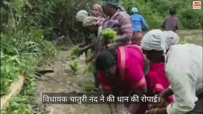 VIDEO : महासमुंद में विधायक चातुरी नंद ने की धान की रोपाई, देखें