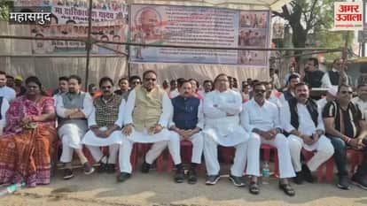 the Congress party staged a protest against the changes made to the MNREGA scheme with Congress workers arriving from across the district in Mahasamund