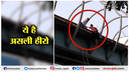 man trying to hanging himself in sky walk in traffic police saved his life in Raipur chhattisgarh