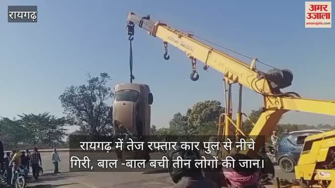 Hindi News ›   Video ›   Chhattisgarh ›   Raigarh News ›   A speeding car fell off a bridge in Raigarh