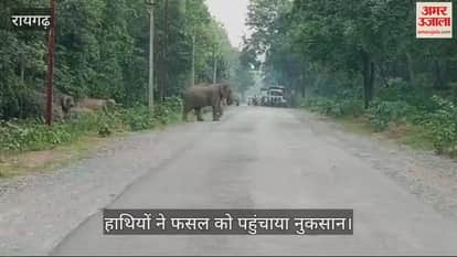 VIDEO : रायगढ़-जशपुर मार्ग में हाथियों का एक दल आने से थमें पहिए, 34 कि सानों की फसल को पहुंचाया नुकसान