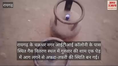 VIDEO : रायगढ़ में गैस वितरण स्थल के पास एक पेड़ में लगी आग, लपटें देख मची अफरा-तफरी