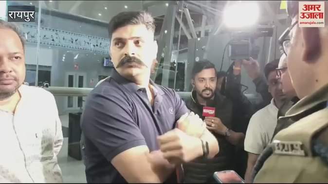 VIDEO : रायपुर एयरपोर्ट पहुंची मुंबई पुलिस, दुर्ग के लिए रवाना