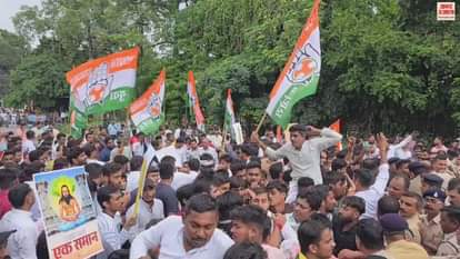 VIDEO : जमीन पर लेटे आकाश शर्मा को घसीटकर ले गई पुलिस, युवा कांग्रेस का सभी जिलों में जेल भरो आंदोलन