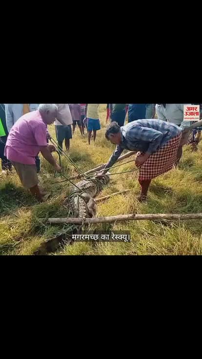 VIDEO : खेत में घूम रहा था भारी भरकम मगरमच्छ, वन अमले ने रेस्क्यू कर खूंटाघाट जलाशय में छोड़ा