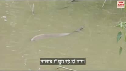 कोरिया जिले के बैकुण्ठपुर अंतर्गत ग्राम चारपारा से अद्भुत नजारा सामने आया है। यहां एक तालाब में दो नाग दिखे जिनमें से एक नाग पूरे तालाब में घूमता रहता है। नाग को लोग दूध पिला रहे हैं।