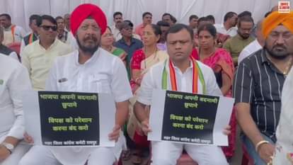 Congress protest in CG: छत्तीसगढ़ कांग्रेस भिलाई विधायक देवेंद्र यादव की गिरफ्तारी के विरोध आज 24 अगस्त को सभी जिलों में विरोध प्रदर्शन किया। इसी क्रम में रायपुर के नमस्ते चौक पर कांग्रेस नेताओं ने प्रदर्शन कर विरोध जताया। कांग्रेस नेताओं ने भाजपा पर विपक्ष के नेताओं की छवि खराब करने और सरकार पर बदले की कार्रवाई का भी आरोप लगाया। रायपुर में 'कांग्रेस के सीनियर लीडर सतनामी समाज के बेगुनाहों को रिहा करो, रिहा करो',' भाजपा अपनी नाकामी छिपा रही' जैसे नारे लिखे तख्ती लेकर नारेबाजी की। पीसीसी चीफ दीपक बैज ने मीडिया से चर्चा में कहा कि “हिम्मत है तो नार्को टेस्ट करा लें, हमारा एक-एक कार्यकर्ता नार्को टेस्ट के लिए तैयार है। सीएम और गृहमंत्री का भी नार्को टेस्ट हो। नार्को टेस्ट से बड़ा कोई और भी टेस्ट हो तो वो भी कराने कांग्रेसी तैयार हैं।
