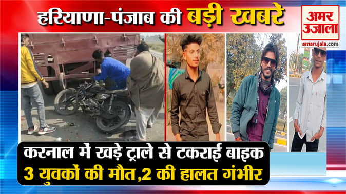 करनाल में खड़े ट्राले से टकराई बाइक,3 युवकों की मौत,2 की हालत गंभीर समेत हरियाणा की बड़ी खबरें